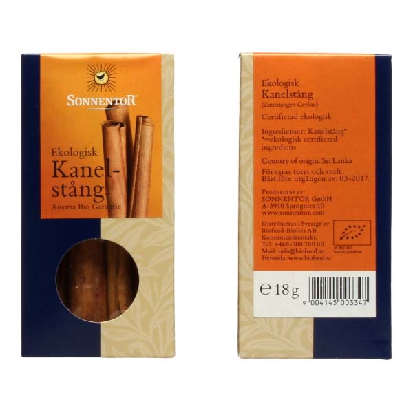 En ekologisk kanelstång från Sonnentor odlad på Sri Lanka.